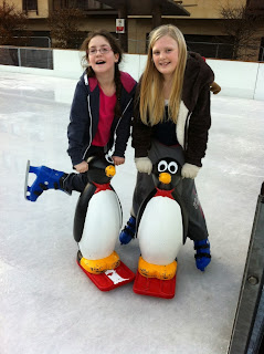 The girls with penguin friends took easily to the ice and below with Santa on the rollercoaster!