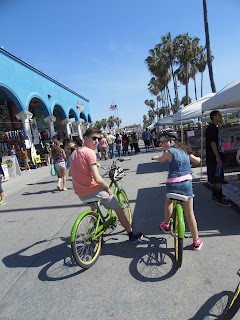 Ocean Front Walk. As we take the winding bicycle path to Venice Beach my