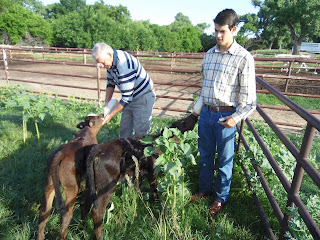 | Feeding the calves at Moore Ranch with Will the ranch hand |