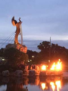 Our Kansas adventure started the moment we landed at Wichita airport. Regarded as the airplane capital of the world and home to names like Cessna, Beech and Boeing makes it a must for aviation enthusiasts. We flew from Dublin with United Airlines via Newark and after a short transfer into Wichita city my arrival was cushioned by a warm welcome at the Ambassador Hotel. After a delicious dinner we were just in time to see the lighting of the lamps at the iconic 'Keeper of the Plains' statue. This 44 feet statue of an Indian Chief stands majestically at the meeting of the Arkansas Big and Little Rivers. Every night at sunset flames shoot from the urns at the foot of the keeper for fifteen minutes, dramatically lighting the night sky. As we arrived the confluence was buzzing with visitors and locals to see this almost spiritual experience.